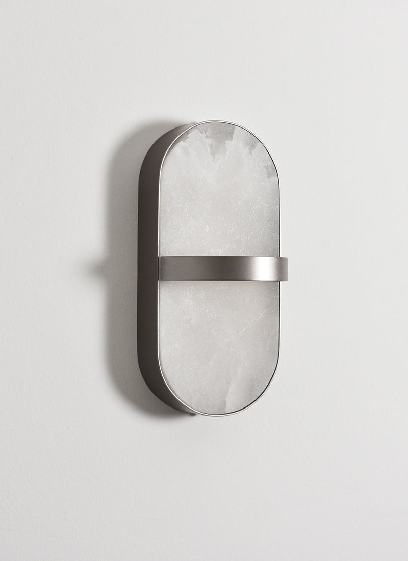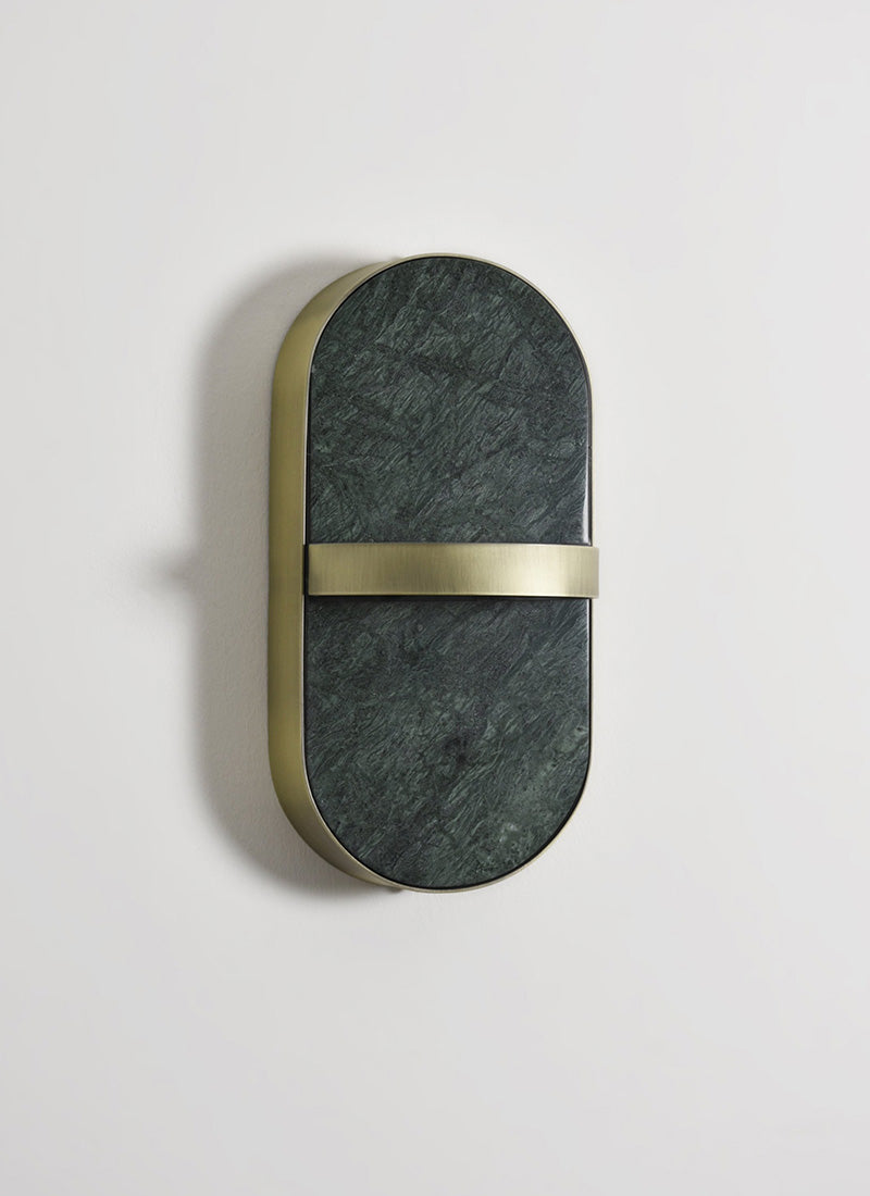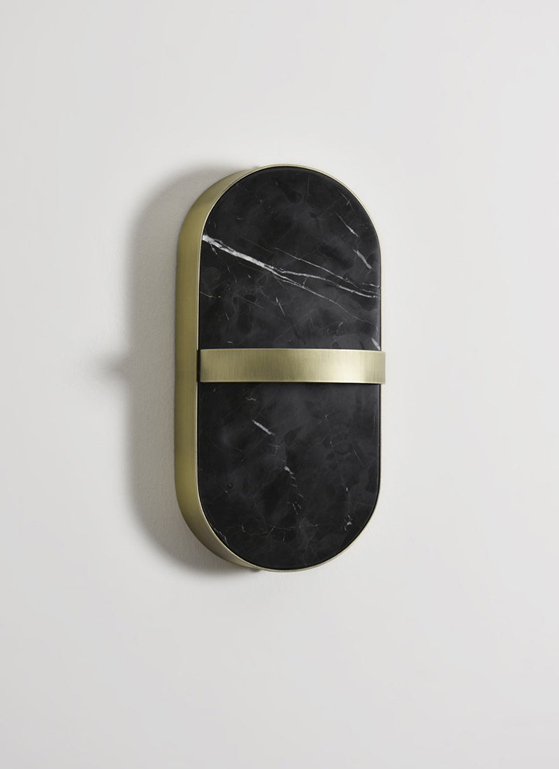 The TORIN wall light combines the naturalness of marble or stone with the strength of metal. Its indirect lighting radiates and spreads across the stone, enhancing its beauty.